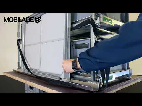 Spännbandet kan sitta kvar permanent på Mobilade och dras enkelt över bordet. På så sätt kan du snabbt och enkelt förvara och allt bekvämt från utsidan.